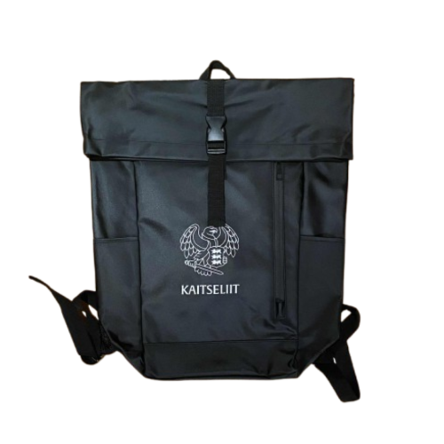 Must Kaitseliidu logoga rullitav kerge seljakott on hea lahendus neile, kes otsivad mugavat lahendust matkale või reisile. Tagaküljel on rihm, mis võimaldab seljakoti asetada kohvri käepideme külge. Vastupidavast polüestrist valmistatud kott peab hästi vastu igapäevasele kasutusele. Külgedel on taskud veepudeli jaoks. Ees on lukuga tasku, kuhu on hea võtmed ja telefon panna.